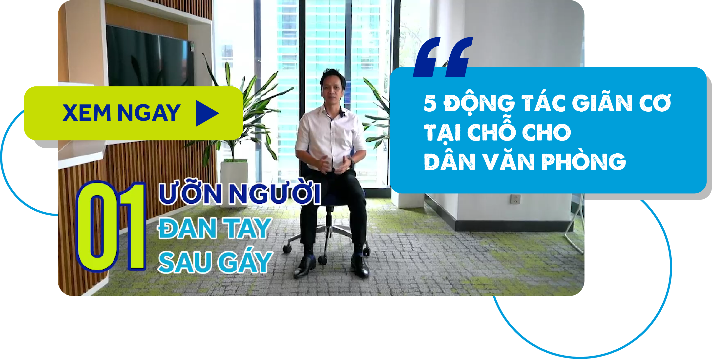 Những động tác này vô cùng đơn giản, bạn có thể thực hiện ngay tại ghế ngồi làm việc của mình. Đặc biệt, huấn luyện viên hướng dẫn còn là một người ACB rất thân quen.